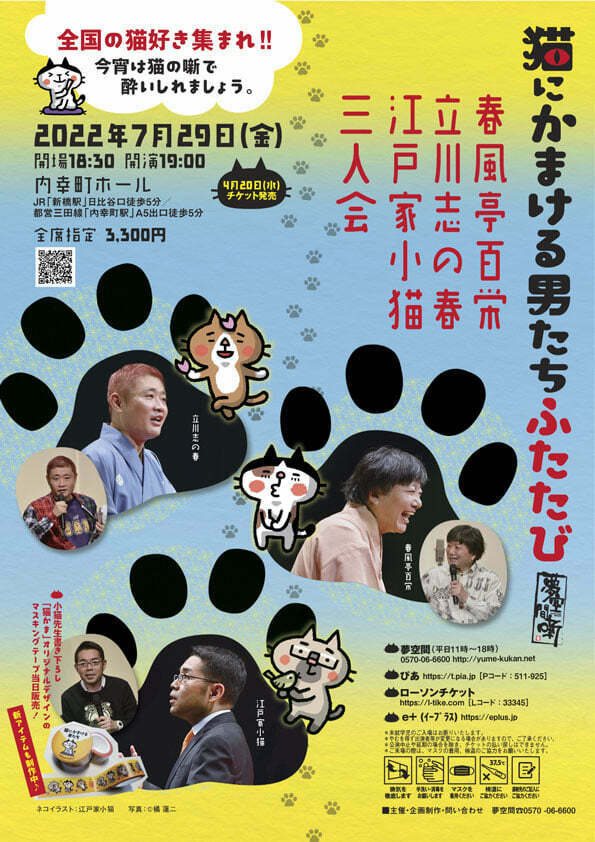 春風亭百栄・立川志の春・江戸家小猫 三人会 『猫にかまける男たち ふたたび』 22/7/29(金) 千代田区立内幸町ホール シェア ツイート 上演情報 ジャンル 落語/演芸 未就学児童は入場不可。 料金 一般-3,300円 全席指定 表示できるチケット情報はありません詳しくはこちら キャスト&スタッフ 出演 春風亭百栄 立川志の春 江戸家小猫 お問い合わせ 夢空間 シェア ツイート