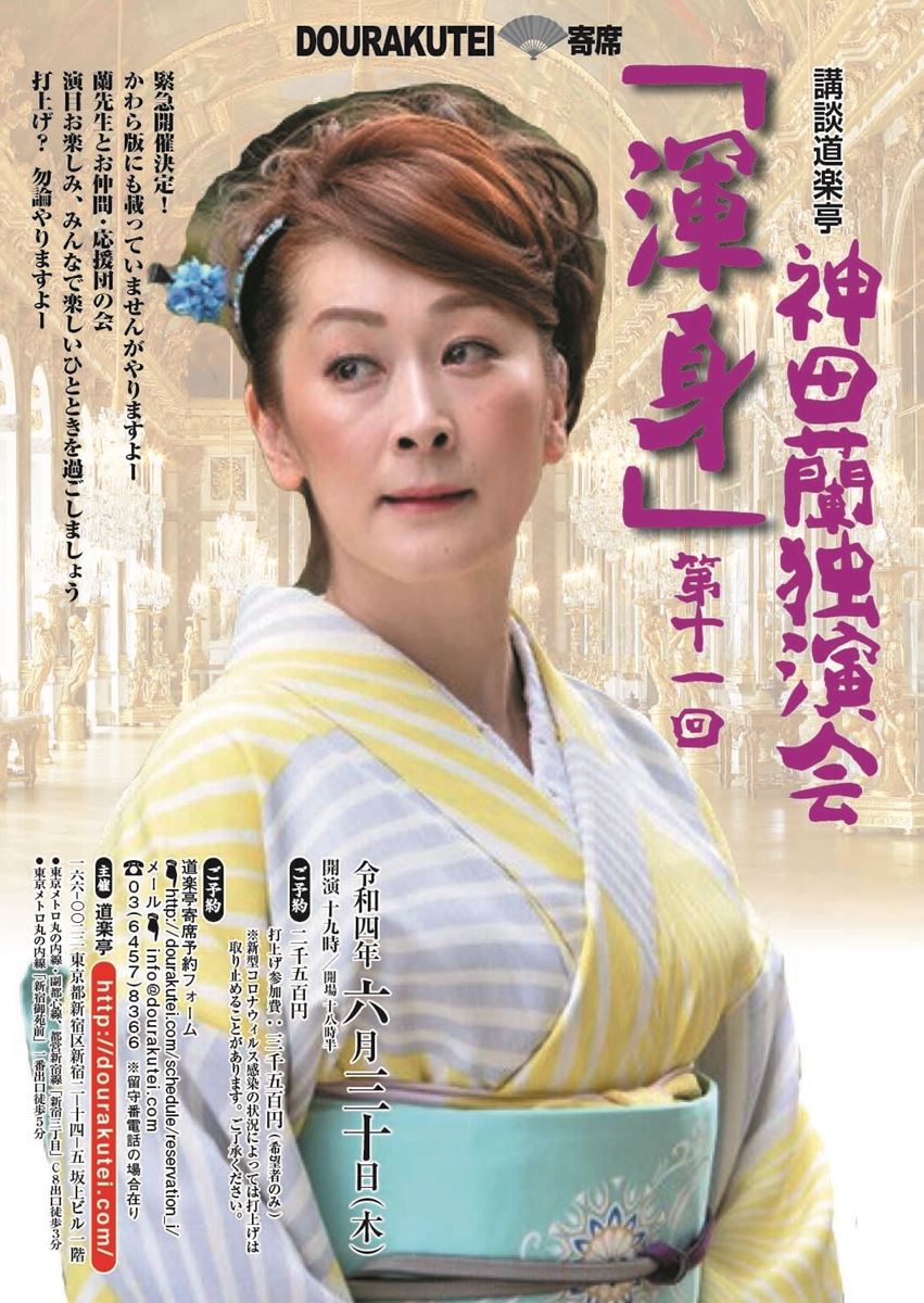 神田蘭 独演会『渾身』 22/6/30(木) 道楽亭(Ryu's Bar) シェア ツイート 上演情報 ジャンル 落語/演芸 打ち上げあり(希望者のみ)参加費-3,500円 料金 木戸銭-2,500円 キャスト&スタッフ 出演 神田蘭 お問い合わせ 道楽亭 公式サイト シェア ツイート