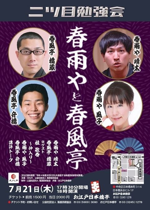 お江戸日本橋亭 二ツ目勉強会~春雨やと春風亭~ 22/7/21(木) お江戸日本橋亭 シェア ツイート 上演情報 ジャンル 落語/演芸 料金 一般-1,500円当日-2,000円 キャスト&スタッフ 出演 桂歌春 春雨や風子 お問い合わせ 落語芸術協会 お江戸日本橋亭 10:00~18:00 公式サイト シェア ツイート