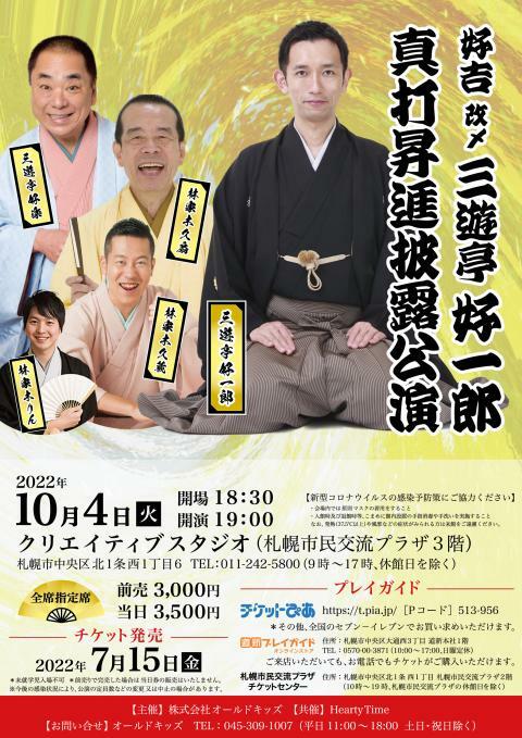 好吉改メ 三遊亭好一郎 真打昇進披露公演 22/10/4(火) 札幌市民交流プラザ クリエイティブスタジオ シェア ツイート 上演情報 ジャンル 落語/演芸 未就学児入場不可 料金 一般-3,000円 全席指定 表示できるチケット情報はありません詳しくはこちら キャスト&スタッフ 出演 三遊亭好一郎 三遊亭好楽 林家木久扇 林家木久蔵 林家希林 お問い合わせ オールドキッズ シェア ツイート
