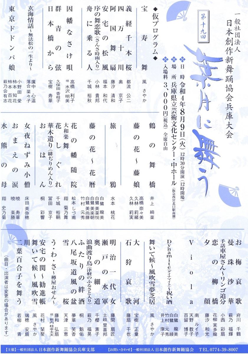 一般社団法人 日本創作新舞踊協会 兵庫大会 葉月に舞う 22/8/9(火) 兵庫県立芸術文化センター 阪急 中ホール シェア ツイート 上演情報 ジャンル ダンス/バレエ 料金 一般-3,000円 全席自由 キャスト&スタッフ [出演]風さやか / 都流公二 / 奥京子 / 他 お問い合わせ 石田 石田 公式サイト シェア ツイート