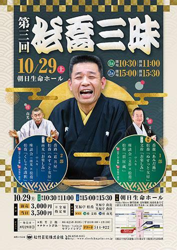 第三回 松喬三昧 22/10/29(土) 朝日生命ホール シェア ツイート 上演情報 ジャンル 落語/演芸 未就学児童は入場不可。 料金 前売-3,000円 全席指定 表示できるチケット情報はありません詳しくはこちら キャスト&スタッフ 出演 笑福亭松喬 笑福亭喬龍 笑福亭喬路 ゲスト 桂文珍 桂南光 お問い合わせ 松竹芸能 平日10:00~19:00 シェア ツイート