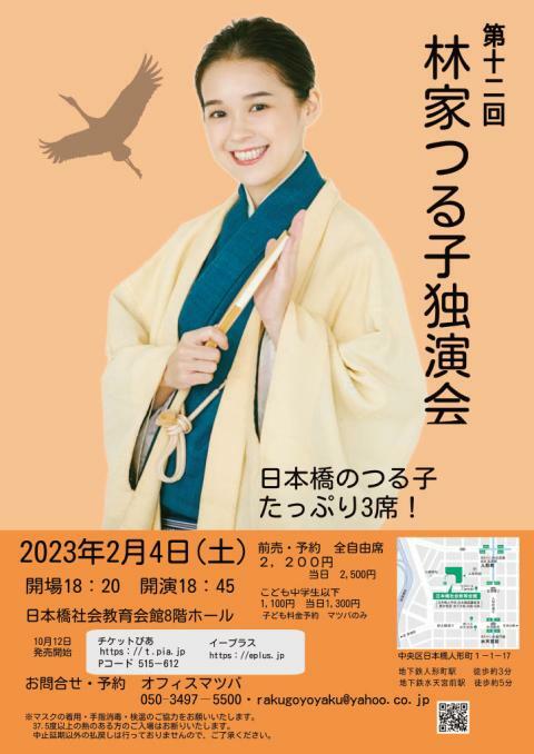 第12回 林家つる子独演会 23/2/4(土) 日本橋社会教育会館 シェア ツイート 大人気の二ッ目 林家つる子のホールでの独演会です! 上演情報 ジャンル 落語/演芸 当日2500円 中止延期以外の払い戻しはおこなっておりませんので、ご了承の上、ご購入ください。マスクの着用・手指の消毒・検温にご協力をお願いいたします。 料金 一般-2,200円 全席自由 表示できるチケット情報はありません詳しくはこちら キャスト&スタッフ 出演 林家つる子 [出演]林家つる子 お問い合わせ オフィスマツバ 公式サイト シェア ツイート