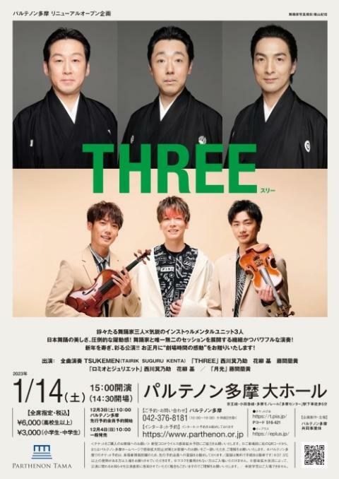 リニューアルオープン企画『THREE』 23/1/14(土) パルテノン多摩 大ホール シェア ツイート 上演情報 ジャンル ポップス/ロック その他古典芸能 未就学児童は入場不可。車椅子での来場はチケット購入前問合せ先まで要連絡。 料金 一般-6,000円子供-3,000円 一般:高校生以上子供:小学生、中学生 表示できるチケット情報はありません詳しくはこちら キャスト&スタッフ 出演 西川箕乃助 花柳基 藤間蘭黄 TSUKEMEN [出演]西川箕乃助 / 花柳基 / 藤間蘭黄 / TSUKEMEN お問い合わせ パルテノン多摩 公式サイト シェア ツイート