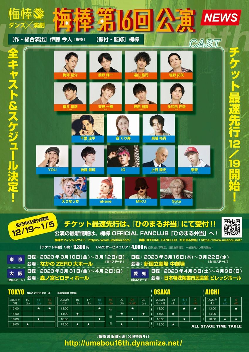 未就学児童は入場不可。車椅子のお客様はチケットご購入前に問合せ先までご連絡をお願いいたします。公演の最新情報は公演特設サイトをご確認ください。http://umebou16th.dynamize.net/