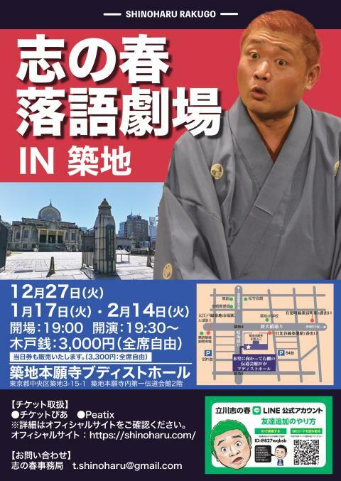 志の春落語劇場inブディストホール1月 23/1/17(火) 築地本願寺 ブディストホール シェア ツイート 築地ブディストホールで開催する立川志の春定例独演会です! 上演情報 ジャンル 落語/演芸 未就学児童は入場不可 料金 一般-3,000円 全席自由 表示できるチケット情報はありません詳しくはこちら キャスト&スタッフ 出演 立川志の春 [出演]立川志の春 お問い合わせ 志の春事務局 シェア ツイート