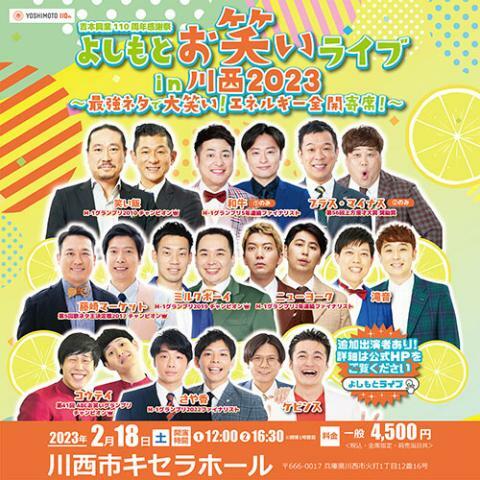 5歳以上または身長110cm以上の方はお席が必要となります。必ずマスク着用と、入場時に手指の消毒をお願いします。検温により入場をお断りさせて頂く場合がございます。録音・録画・撮影・配信・飲食禁止。都合により出演者が変更になる場合がございます。変更・払戻不可。開演時間は多少前後する場合がございますのでご了承ください。よしもとライブHPに「感染症予防対策のご案内」を掲載しております。来場前にご確認ください。車椅子の方はチケット購入前に川西市キセラホール(TEL:072-744-1515)まで要問合せ。