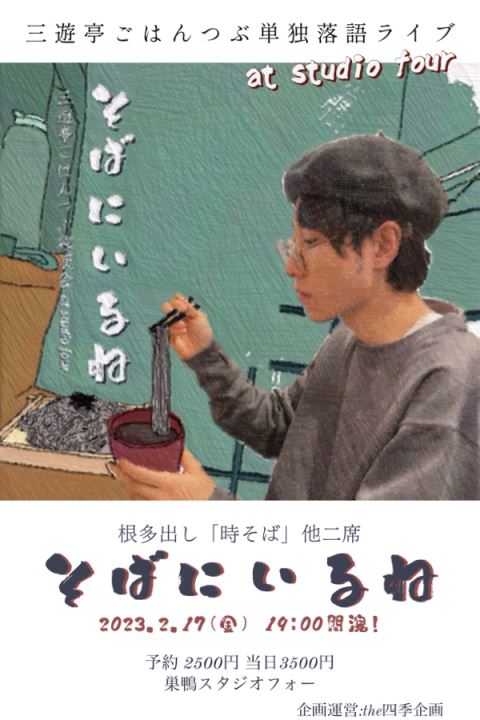 三遊亭ごはんつぶ単独落語ライブ『そばにいるね』 23/2/17(金) studio FOUR シェア ツイート 上演情報 ジャンル 落語/演芸 料金 一般-2,500円 全席自由 表示できるチケット情報はありません詳しくはこちら キャスト&スタッフ 出演 三遊亭ごはんつぶ [出演]三遊亭ごはんつぶ お問い合わせ The四季企画 公式サイト シェア ツイート