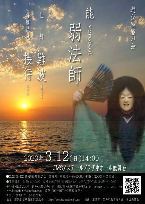 遊び座能の会『弱法師』 23/3/12(日) 広島JMSアステールプラザ 中ホール 能舞台 シェア ツイート すべての写真(5)を見る 能「弱法師」…梅花薫る四天王寺の彼岸、盲目の俊徳丸の精神的世界観が能舞台に充ちる すべての写真(5)を見る 上演情報 ジャンル 能/狂言 料金 一般-4,000円中高生-2,000円 全席自由 表示できるチケット情報はありません詳しくはこちら キャスト&スタッフ 出演 山本博通 山下あさの 横山幸彦 辻山錦篁 [出演]山本博通 / 山下あさの / 横山幸彦 / 辻山錦篁 お問い合わせ 遊び座・伝統芸能を楽しむ会 公式サイト シェア ツイート