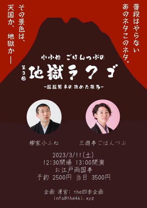 小ふね・ごはんつぶの第3回『地獄ラクゴ』-超超若手の攻めた根多- 23/3/11(土) お江戸両国亭 シェア ツイート 柳家小ふね・三遊亭ごはんつぶによる落語会。 上演情報 ジャンル 落語/演芸 料金 一般-2,500円 全席自由 表示できるチケット情報はありません詳しくはこちら キャスト&スタッフ 出演 柳家り助 三遊亭ごはんつぶ [出演]柳家小ふね / 三遊亭ごはんつぶ お問い合わせ The四季企画 公式サイト シェア ツイート