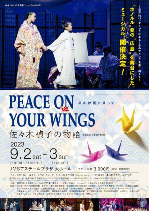 PEACE ON YOUR WINGS 平和は翼に乗って ~佐々木禎子の物語 23/9/2(土)~23/9/3(日) 広島JMSアステールプラザ 大ホール シェア ツイート 上演情報 ジャンル ミュージカル 未就学児童は入場不可。 料金 一般-3,000円 全席指定 表示できるチケット情報はありません詳しくはこちら キャスト&スタッフ 出演 オハナアーツ [出演]オハナアーツ お問い合わせ 被爆78年 広島平和ミュージカル2023実行委員会 公式サイト シェア ツイート