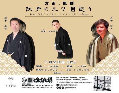 方正・風柳 江戸の二ツ目巡り 23/7/20(木) ばばん場 シェア ツイート 江戸の二ツ目さんをゲストに迎えて、落語3席(各1席ずつ)+3人でのトークもあります。 上演情報 ジャンル 落語/演芸 料金 一般-3,000円 全席自由 表示できるチケット情報はありません詳しくはこちら キャスト&スタッフ 出演 月亭方正 柳家風柳 柳家あお馬 [出演]月亭方正 / 柳家風柳 / 柳家あお馬 お問い合わせ らく鍋 公式サイト シェア ツイート
