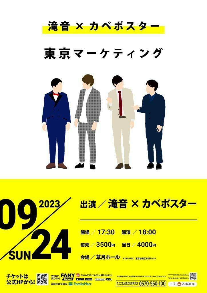 滝音×カベポスター『東京マーケティング』 23/9/24(日) 草月ホール シェア ツイート 上演情報 ジャンル お笑い ご購入前に、よしもとライブホームページにて<感染症対策に関して>をご確認ください。5歳以上は有料。4歳以下はひざ上のみ無料、但し、お席が必要な場合は有料。車椅子席をご利用の方は、チケットご購入前にFANYチケット問合せダイヤル{TEL]0570(550)100(10時~19時/年中無休)までお問合せください。 料金 一般-3,500円 全席指定 表示できるチケット情報はありません詳しくはこちら キャスト&スタッフ 出演 滝音 カベポスター ゲスト ママタルト [出演]滝音 / カベポスター [ゲスト]ママタルト お問い合わせ FANYチケット問合せダイヤル 公式サイト シェア ツイート