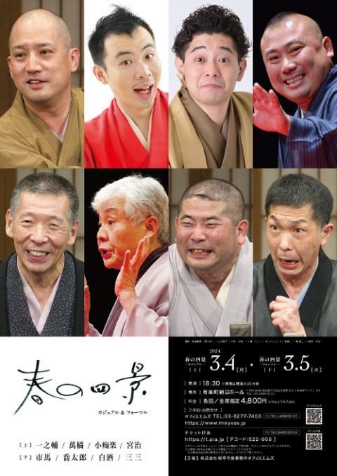 春の四景 24/3/4(月)~24/3/5(火) 有楽町朝日ホール シェア ツイート 上演情報 ジャンル 落語/演芸 料金 一般-4,800円 全席指定未就学児童は入場不可 表示できるチケット情報はありません詳しくはこちら キャスト&スタッフ 出演 春風亭一之輔 三遊亭萬橘 柳亭小痴楽 桂宮治 柳亭市馬 柳家喬太郎 桃月庵白酒 柳家三三 お問い合わせ オフィスM's 公式サイト シェア ツイート