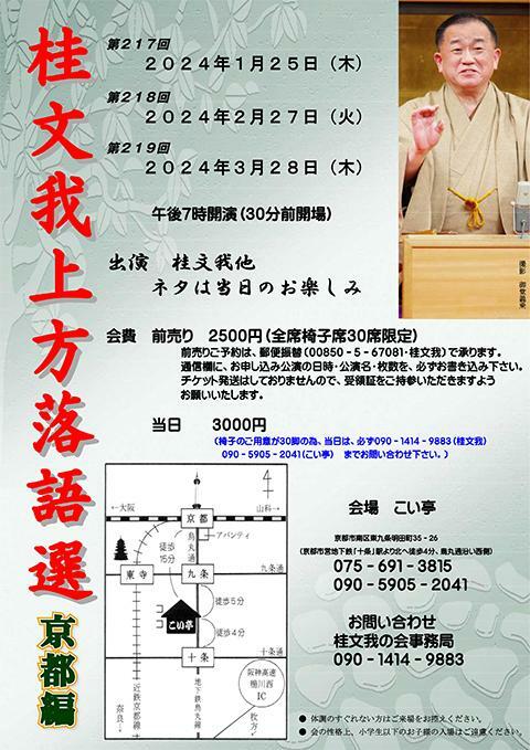 桂文我上方落語選 京都編 24/1/25(木)~24/3/28(木) 京都 こい亭 シェア ツイート 上演情報 ジャンル 落語/演芸 小学生以下は入場不可。パイプ椅子のご用意有り。ご希望の方は1脚につき100円別途要、事前に問合せ先までご連絡ください。 料金 前売-2,500円当日-3,000円 表示できるチケット情報はありません詳しくはこちら キャスト&スタッフ 出演 桂文我 [出演]桂文我 お問い合わせ 桂文我の会事務局 公式サイト シェア ツイート