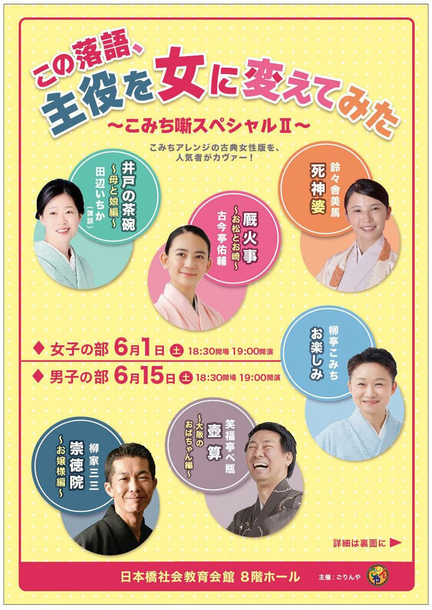 『この落語、主役を女に変えてみた~こみち噺スペシャルII~』 24/6/1(土)~24/6/15(土) 日本橋社会教育会館 シェア ツイート 上演情報 ジャンル 落語/演芸 料金 前売・当日ともに:3,500円 ※全席指定・税込 キャスト&スタッフ 出演 柳亭こみち 田辺いちか 古今亭佑輔 鈴々舎美馬 柳家三三 笑福亭べ瓶 お問い合わせ ごりんや 公式サイト シェア ツイート