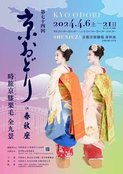 第74回 京おどり in 春秋座 24/4/6(土)~24/4/21(日) 京都芸術劇場 春秋座(京都芸術大学内) シェア ツイート 上演情報 ジャンル その他古典芸能 お申込み後のキャンセル、変更は出来ません。ご予定をお確かめの上でご予約下さい。10歳未満入場不可。お茶席へは開演時間の1時間前よりご案内いたします。開演の30分前までにお越し下さい。観覧後はお茶席へお入りいただけません。チケットの無断有償譲渡は禁止致します。お車・バイクでのご来場はお断りいたします。2枚以上でご購入されたお客様は、状況によっては連席でご案内できない場合がございます。予めご了承ください。 料金 一般-7,000円 全席指定お茶席つき 表示できるチケット情報はありません詳しくはこちら お問い合わせ 宮川町お茶屋組合 10:00~16:30・土日祝休 キョードーインフォメーション (チケットに関する問合せ)11:00~18:00・ 日祝休 京都芸術劇場チケットセンター (車椅子に関する問合せ) 公式サイト シェア ツイート