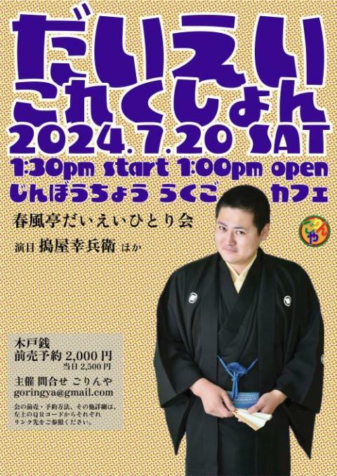 春風亭だいえいひとり会『だいえいこれくしょん』 24/7/20(土) らくごカフェ シェア ツイート 春風亭だいえいさんのちょっぴりコワイ落語、「だいえいこれくしょん」をお楽しみ下さい! 上演情報 ジャンル 落語/演芸 料金 一般-2,000円 全席自由 表示できるチケット情報はありません詳しくはこちら キャスト&スタッフ 出演 春風亭枝次 [出演]春風亭だいえい お問い合わせ ごりんや 公式サイト シェア ツイート