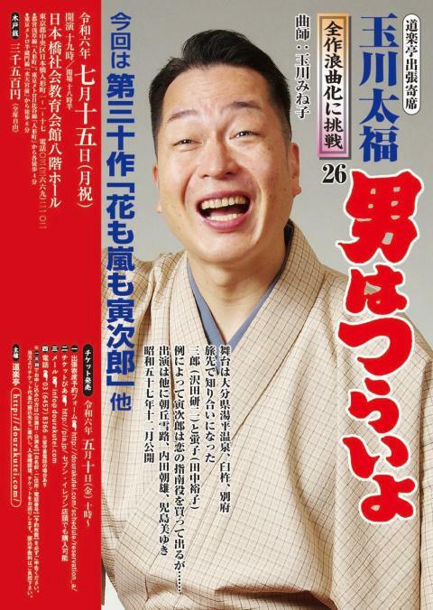 玉川太福『男はつらいよ』浪曲化に挑戦!第30作・花も嵐も寅次郎 24/7/15(月) 日本橋社会教育会館 シェア ツイート 玉川太福『男はつらいよ』全作浪曲化に挑戦!太福さんが名作をどう演じますか、乞うご期待。 上演情報 ジャンル 落語/演芸 料金 一般-3,500円 全席自由 表示できるチケット情報はありません詳しくはこちら キャスト&スタッフ 出演 玉川太福 玉川みね子 [出演]玉川太福 / 玉川みね子 お問い合わせ 道楽亭 公式サイト シェア ツイート