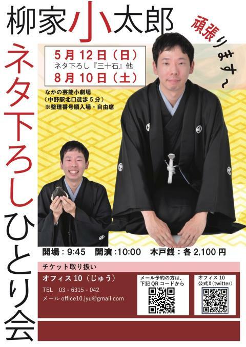 第一回 柳家小太郎ネタ下ろしひとり会『三十石』他 24/5/12(日) なかの芸能小劇場 シェア ツイート 昨年二ツ目に昇進した新二ツ目・柳家小太郎さんのネタ下ろしの会!一回目は『三十石』他 上演情報 ジャンル 落語/演芸 料金 一般-2,100円 全席自由・整理番号付 表示できるチケット情報はありません詳しくはこちら キャスト&スタッフ 出演 柳家小太郎 [出演]柳家小太郎 お問い合わせ オフィス10 公式サイト シェア ツイート