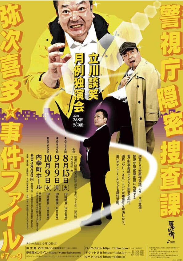 立川談笑 月例独演会 其の260回 24/10/9(水) 千代田区立内幸町ホール シェア ツイート 上演情報 ジャンル 落語/演芸 公演中止や延期の場合を除き、チケットの払い戻しはできません。ご来場の際は、感染防止対策へのご協力をお願いいたします。開演後は客席へのご案内を制限させていただく場合がございます。 料金 一般-3,800円 全席指定未就学児は入場不可 表示できるチケット情報はありません詳しくはこちら キャスト&スタッフ メイン 立川談笑 [出演]立川談笑 お問い合わせ 夢空間 公式サイト シェア ツイート