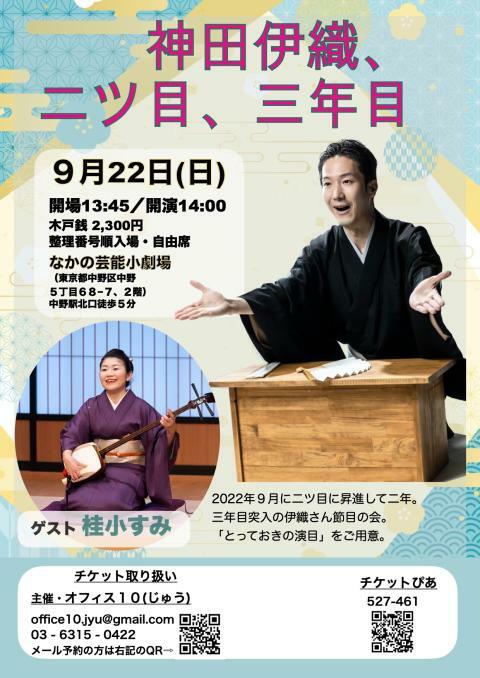 神田伊織、二ツ目、三年目 ゲスト・桂小すみ 24/9/22(日) なかの芸能小劇場 シェア ツイート 2022年9月に二ツ目に昇進して二年。三年目突入の伊織さん節目の会。「とっておきの演目」をご用意。 上演情報 ジャンル 落語/演芸 料金 一般-2,300円 全席自由・整理番号付 表示できるチケット情報はありません詳しくはこちら キャスト&スタッフ 出演 神田伊織 桂小すみ [出演]神田伊織 / 桂小すみ お問い合わせ オフィス10 公式サイト シェア ツイート
