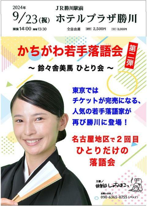 鈴々舎美馬ひとり会vol.2~かちがわ若手落語会 24/9/23(月) ホテルプラザ勝川 シェア ツイート 東京ではチケットが完売になる人気の女流落語家。意欲的に新作落語・古典落語に取り組んでいる。 上演情報 ジャンル 落語/演芸 未就学児童は入場不可。 料金 一般-2,500円 全席自由 表示できるチケット情報はありません詳しくはこちら キャスト&スタッフ 出演 鈴々舎美馬 [出演]鈴々舎美馬 お問い合わせ 倶楽部しゃちほこっ事務局:バンノ 公式サイト シェア ツイート