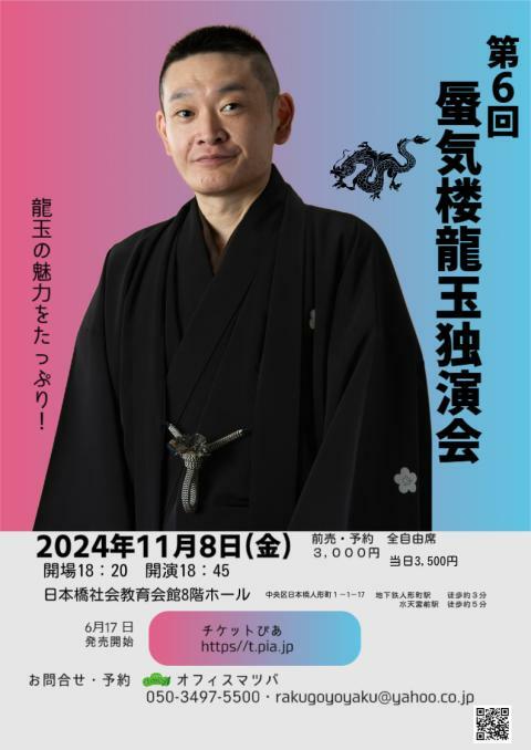 第6回 蜃気楼龍玉独演会 24/11/8(金) 日本橋社会教育会館 シェア ツイート 人気と実力の蜃気楼龍玉のホール落語会 上演情報 ジャンル 落語/演芸 中止延期以外の払い戻しはおこなっておりませんので、ご了承の上、ご購入ください。 料金 一般-3,000円 全席自由当日+500円 表示できるチケット情報はありません詳しくはこちら キャスト&スタッフ 出演 蜃気楼龍玉 [出演]蜃気楼龍玉 お問い合わせ オフィスマツバ 公式サイト シェア ツイート