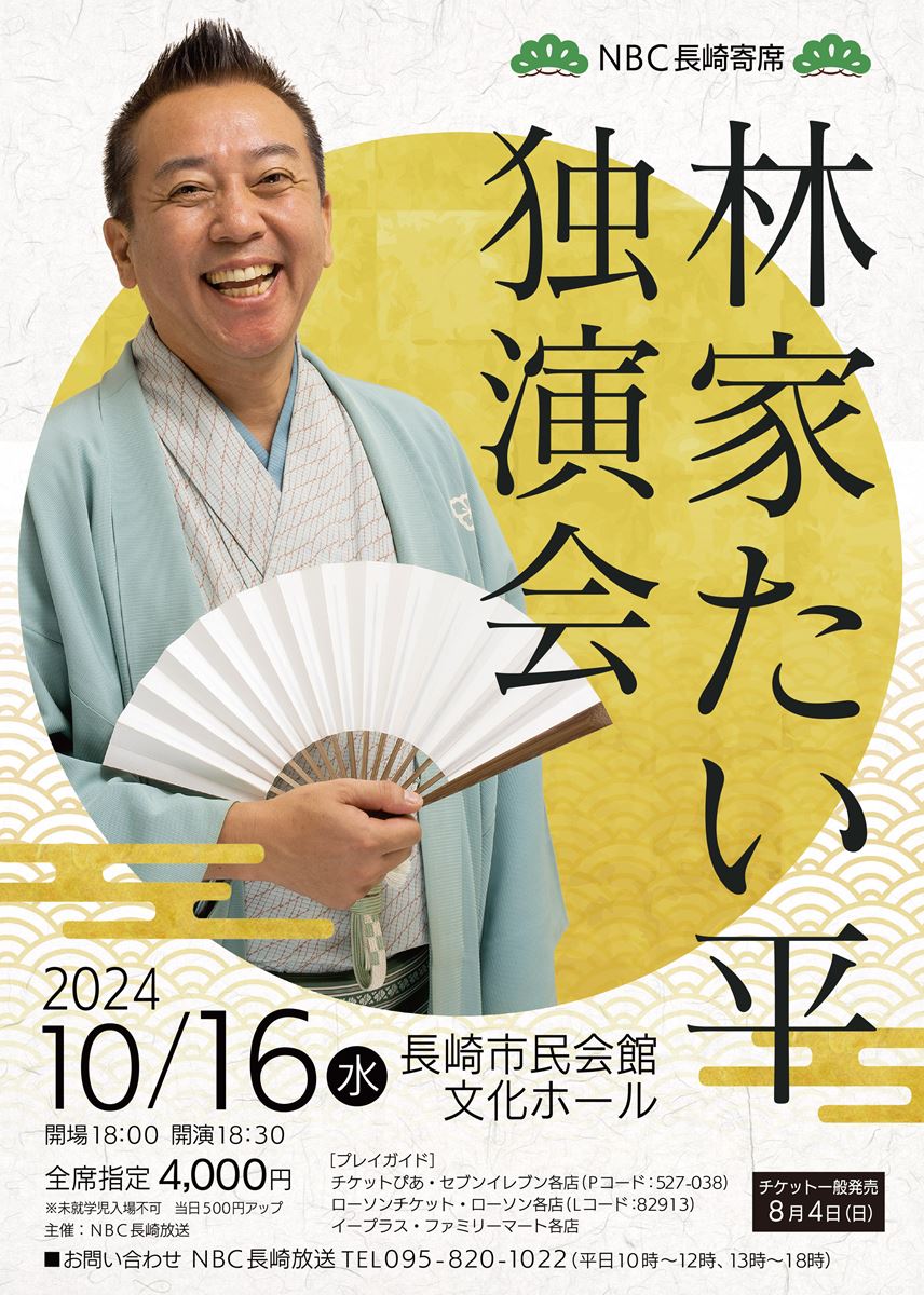 NBC長崎寄席 林家たい平独演会 24/10/16(水) 長崎市民会館 文化ホール シェア ツイート 上演情報 ジャンル 落語/演芸 料金 前売-4,000円当日-4,500円 全席指定未就学児は入場不可 表示できるチケット情報はありません詳しくはこちら キャスト&スタッフ 出演 林家たい平 [出演]林家たい平 お問い合わせ NBC長崎放送 10:00~12:00/13:00~18:00・土日祝休 公式サイト シェア ツイート