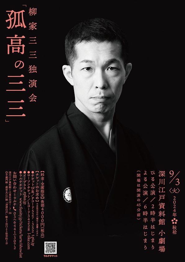 柳家三三独演会 孤高の三三 24/9/3(火) 深川江戸資料館 小劇場 シェア ツイート 上演情報 ジャンル 落語/演芸 料金 一般-4,000円 全席指定未就学児童入場不可 表示できるチケット情報はありません詳しくはこちら キャスト&スタッフ 出演 柳家三三 [出演]柳家三三 お問い合わせ ラルテ 公式サイト シェア ツイート