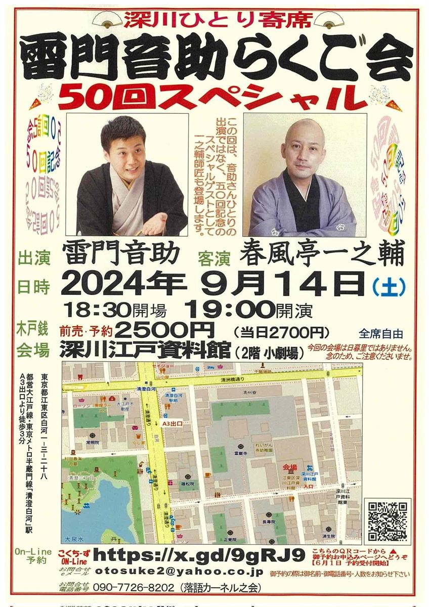 深川ひとり寄席 雷門音助らくご会 50回スペシャル 24/9/14(土) 深川江戸資料館 小劇場 シェア ツイート 上演情報 ジャンル 落語/演芸 料金 予約:2,500円当日:2,700円 ※全席自由 キャスト&スタッフ 出演 雷門音助 春風亭一之輔 お問い合わせ 詳細はこちら シェア ツイート