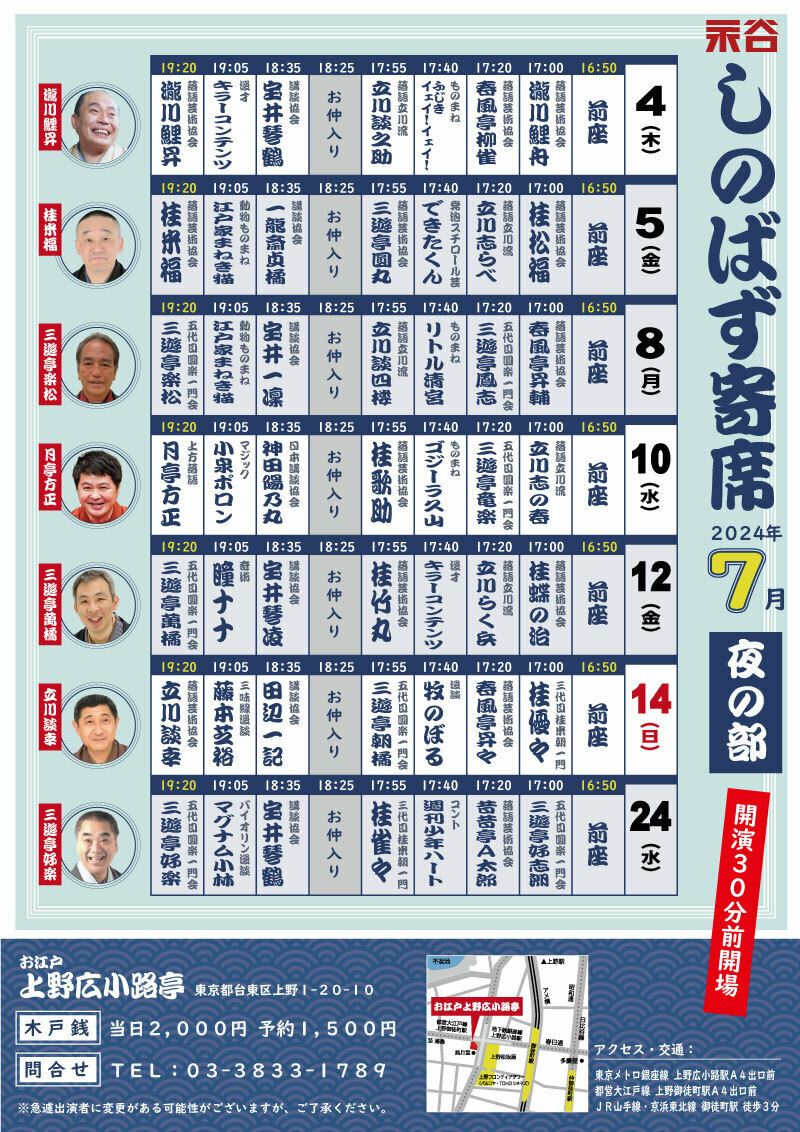 しのばず寄席 24/7/14(日) お江戸上野広小路亭 シェア ツイート 上演情報 ジャンル 落語/演芸 料金 当日:2,000円予約:1,500円 お問い合わせ お江戸上野広小路亭 公式サイト シェア ツイート
