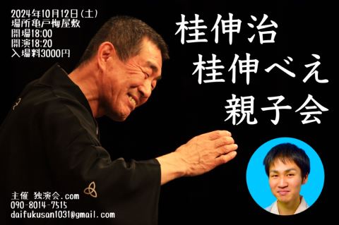 桂伸治桂伸べえ親子会 24/10/12(土) 亀戸梅屋敷 シェア ツイート 桂伸治桂伸べえ親子会です。落語二席づつ。お二人のトークコーナーあります。 上演情報 ジャンル 落語/演芸 料金 一般-3,000円 全席自由 表示できるチケット情報はありません詳しくはこちら キャスト&スタッフ 出演 桂伸治 桂伸べえ [出演]桂伸治 / 桂伸べえ お問い合わせ 独演会.com 公式サイト シェア ツイート