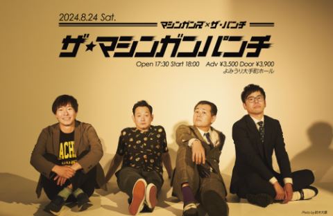 ザ・マシンガンパンチ 24/8/24(土) よみうり大手町ホール シェア ツイート 上演情報 ジャンル お笑い 5歳以上は有料。4歳以下はひざ上のみ無料、但し、お席が必要な場合は有料。こちらの公演は、配信される可能性がございます。あらかじめご了承ください。 料金 一般-3,500円 全席指定車椅子席の方は、チケット購入前にFANYチケット問合せダイヤルまで要問合せ 表示できるチケット情報はありません詳しくはこちら キャスト&スタッフ 出演 マシンガンズ ザ・パンチ [出演]マシンガンズ / ザ・パンチ お問い合わせ FANYチケット問合せダイヤル 10:00~19:00 公式サイト シェア ツイート