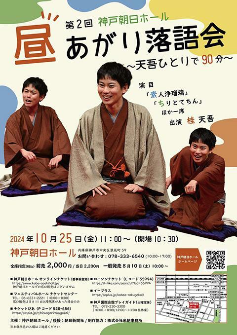 第2回 神戸朝日ホール 昼あがり落語会 ~天吾ひとりで90分~ 24/10/25(金) 神戸朝日ホール シェア ツイート 上演情報 ジャンル 落語/演芸 未就学児童は入場不可。 料金 前売-2,000円当日-2,200円 全席指定 表示できるチケット情報はありません詳しくはこちら キャスト&スタッフ 出演 桂天吾 [出演]桂天吾 お問い合わせ 神戸朝日ホール 10:00~17:00 公式サイト シェア ツイート