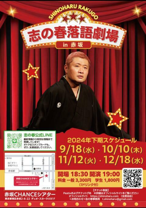 志の春落語劇場in赤坂9月 24/9/18(水) 赤坂CHANCEシアター シェア ツイート 立川志の春が毎月開催している定例会です 上演情報 ジャンル 落語/演芸 未就学児童は入場不可 料金 一般-3,300円学生-1,800円 全席自由1ドリンク付 表示できるチケット情報はありません詳しくはこちら キャスト&スタッフ 出演 立川志の春 [出演]立川志の春 お問い合わせ 志の春事務局 公式サイト シェア ツイート