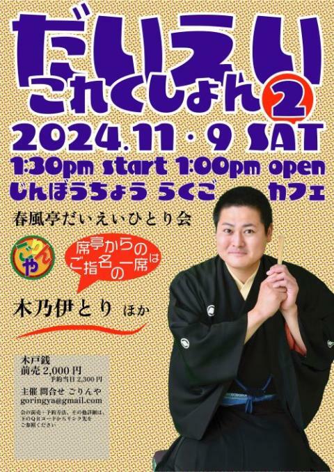 春風亭だいえいひとり会「だいえいこれくしょん2」 24/11/9(土) らくごカフェ シェア ツイート 上演情報 ジャンル 落語/演芸 料金 前売-2,000円当日-2,300円 全席自由 表示できるチケット情報はありません詳しくはこちら キャスト&スタッフ 出演 春風亭枝次 [出演]春風亭だいえい お問い合わせ ごりんや 公式サイト シェア ツイート