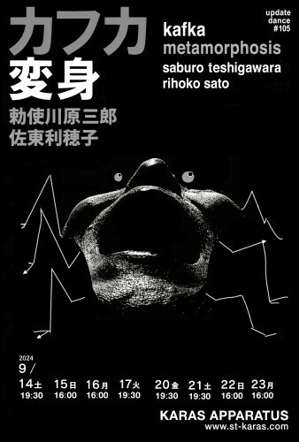 アップデイトダンス 『変身』 24/9/14(土)~24/9/23(月) カラス・アパラタス(KARAS APPARATUS) シェア ツイート 上演情報 ジャンル ダンス/バレエ 料金 一般-5,000円学生-2,500円 全席自由一般当日+500円 キャスト&スタッフ 原作 フランツ・カフカ 演出 勅使川原三郎 出演 勅使川原三郎 佐東利穂子 [原作]フランツ・カフカ [演出]勅使川原三郎 [出演]勅使川原三郎 / 佐東利穂子 お問い合わせ アップデイトダンス 公式サイト シェア ツイート