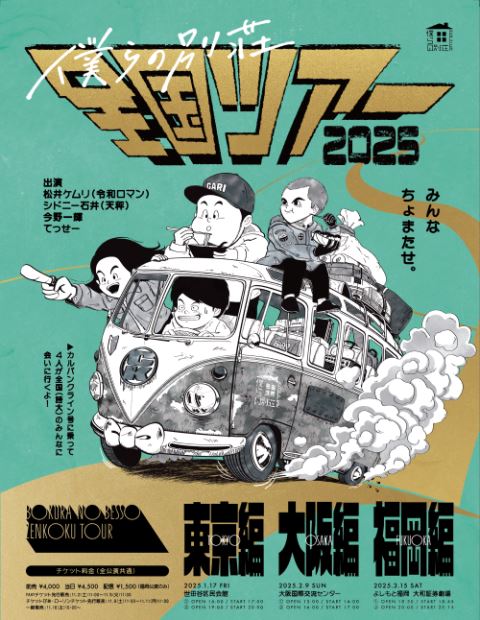僕らの別荘 全国ツアー 25/1/17(金)~25/3/30(日) 世田谷区民会館、大阪国際交流センター 大ホール、よしもと福岡 大和証券劇場、 東京建物 Brillia HALL、その他生配信 シェア ツイート 上演情報 ジャンル お笑い 料金 前売-4,000円当日-4,500円オンラインチケット-1,500円 全席指定未就学児は入場不可車いすの方はチケット購入前に問合せ先まで要連絡 表示できるチケット情報はありません詳しくはこちら キャスト&スタッフ 出演 僕らの別荘 [出演]僕らの別荘 お問い合わせ FANYチケット問合せダイヤル 10:00~19:00 公式サイト シェア ツイート
