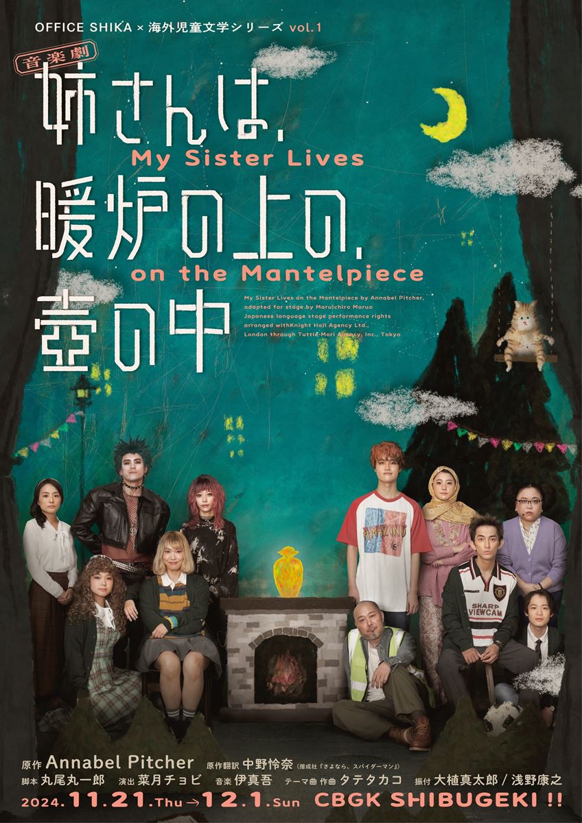 OFFICE SHIKA×海外児童文学シリーズ 音楽劇『姉さんは、暖炉の上の、壺の中』 24/11/21(木)~24/12/22(日) CBGKシブゲキ!!、 その他配信 シェア ツイート 上演情報 ジャンル 小劇場 上演時間:3時間(途中休憩含む)予定 料金 一般-8,400円U-25-4,000円高校生以下-1,000円親子ペアチケット-8,400円配信チケット-3,500円 全席指定U-25・高校生以下・親子ペアチケット:観劇当日要身分証提示親子ペアチケット:小学生のお子様同伴1名無料 キャスト&スタッフ 脚本 丸尾丸一郎 演出 菜月チョビ 出演 大西風雅 瀧野由美子 ロザリーナ [原作]Annabel Pitcher [原作翻訳]中野怜奈 [脚本]丸尾丸一郎 [演出]菜月チョビ [出演]大西風雅 / 瀧野由美子 / ロザリーナ / 他 お問い合わせ 株式会社オフィス鹿 (担当:高橋) 10:00〜21:00 株式会社オフィス鹿 公式サイト シェア ツイート