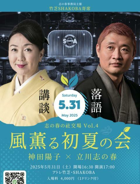 志の春の社交場Vol.4 風薫る初夏の会 25/5/31(土) SHAKOBA HALL シェア ツイート 志の春の社交場 第四弾は、再び神田陽子先生と講談&落語をお届けします 上演情報 ジャンル 落語/演芸 料金 一般-4,000円 全席自由1ドリンク付未就学児童は入場不可 表示できるチケット情報はありません詳しくはこちら キャスト&スタッフ 出演 立川志の春 神田陽子 [出演]立川志の春 / 神田陽子 お問い合わせ 志の春事務局 公式サイト シェア ツイート