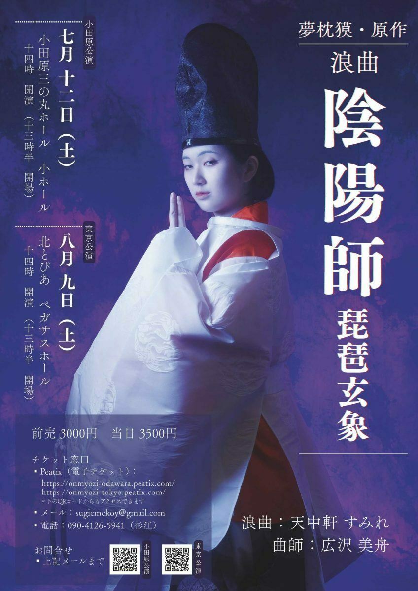 『夢枕獏 原作 浪曲 陰陽師 -琵琶玄象-』 25/7/12(土) 小田原三の丸ホール 小ホール シェア ツイート 上演情報 ジャンル 落語/演芸 料金 一般:3,000円 ※全席自由※当日券:3,500円 キャスト&スタッフ 出演 天中軒すみれ お問い合わせ チケットはこちら シェア ツイート