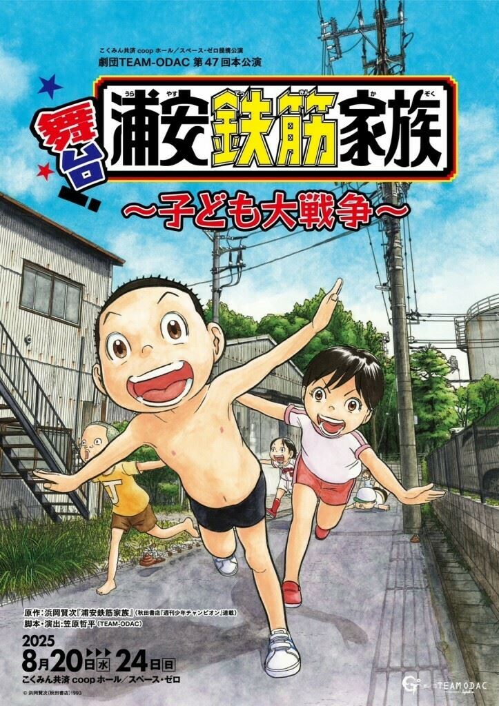 劇団TEAM-ODAC『浦安鉄筋家族〜⼦ども⼤戦争〜』 25/8/20(水)~25/8/24(日) こくみん共済 coop ホール(全労済ホール)/スペース・ゼロ シェア ツイート 上演情報 ジャンル 2.5次元 料金 S席-10,500円A席-8,500円 全席指定当日+500円 キャスト&スタッフ 出演 秋吉優花 [原作]浜岡賢次(秋⽥書店「週刊少年チャンピオン」連載『浦安鉄筋家族』) [脚本・演出]笠原哲平 [出演]秋吉優花 / ⼀之瀬優 / 熊⼿萌 / 他 お問い合わせ Soymilk Stage Co. 11:00~19:00・土日祝休 公式サイト シェア ツイート