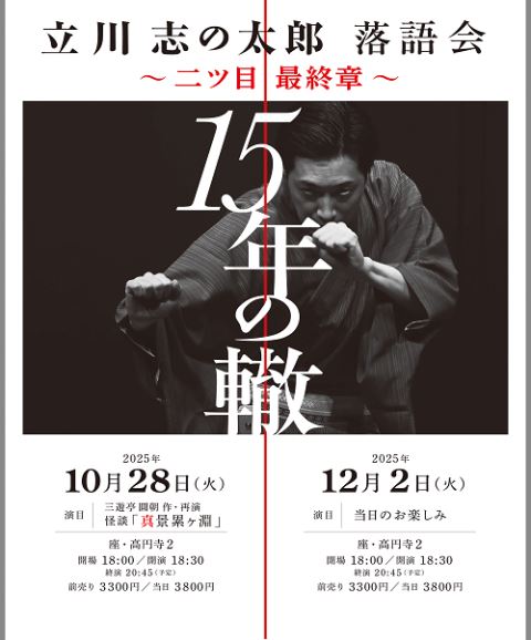 立川志の太郎独演会~二ツ目最終章・15年の轍~ 25/10/28(火)~25/12/2(火) 座・高円寺2 シェア ツイート 上演情報 ジャンル 落語/演芸 出演者は、変更になる場合があります。チケット購入後の変更・キャンセルはできません。 料金 一般-3,300円車いす席-3,300円 全席指定一般当日+500円未就学児入場不可 表示できるチケット情報はありません詳しくはこちら キャスト&スタッフ 出演 立川志の太郎 [出演]立川志の太郎 お問い合わせ 合同会社ハカランダ 合同会社ハカランダ 公式サイト シェア ツイート