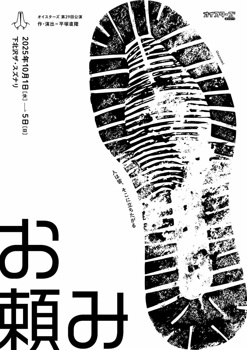 オイスターズ『お頼み』 25/10/1(水)~25/10/5(日) ザ・スズナリ シェア ツイート すべての写真(2)を見る すべての写真(2)を見る 上演情報 ジャンル 小劇場 料金 一般-4,500円U25-2,500円U19-1,000円 全席自由一般当日+500円U25:25歳以下U19:19歳以下未就学児入場不可車いすの方は前日までに問い合わせ先まで要連絡 キャスト&スタッフ 作・演出 平塚直隆 出演 猪股俊明 狩野和馬 鳥島明 [作・演出]平塚直隆 [出演]猪股俊明 / 狩野和馬 / 鳥島明 / 他 お問い合わせ オイスターズ 公式サイト シェア ツイート