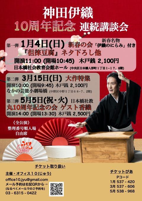 神田伊織 丸10周年記念の会 ゲスト神田香織 師弟トーク付き 26/5/5(火) 日本橋社会教育会館 シェア ツイート 上演情報 ジャンル 落語/演芸 チケットに記載の整理番号順に入場で、自由席となります。 料金 整理番号付自由席-2,500円 表示できるチケット情報はありません詳しくはこちら キャスト&スタッフ 出演 神田伊織 神田香織 [出演]神田伊織 / 神田香織 お問い合わせ オフィス10(じゅう) office10.jyu@gmail.com シェア ツイート