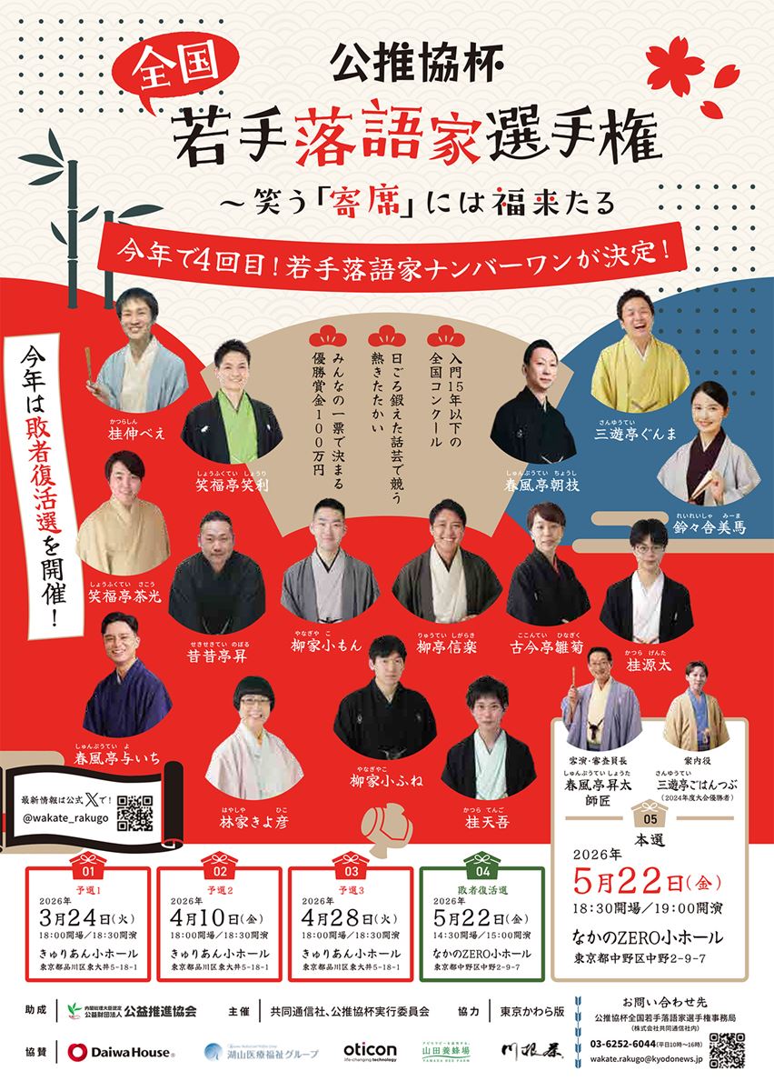 やむを得ない事情により出演者等が変更される場合有。チケットのお申込・ご購入に際しましては、公式サイトに記載の「公演に関する注意事項」をよくお読みの上、同意された方のみご購入下さい。チケットは正規販売ルートでご購入頂きますようお願い致します。チケットや座席番号の譲渡・転売・その購入、及びそれを試みる行為は権利無効であり、いかなる場合も固くお断りしております。正規販売ルート以外で購入されたチケットに関しては、その有効性を一切保証されておりません。転売されたチケットは無効であり、ご入場をお断りさせて頂く場合もございます。ご来場時には必ず本人確認書類をご持参下さい。敗者復活選と本選のチケットをご購入の方には、当日クオカードをプレゼント。