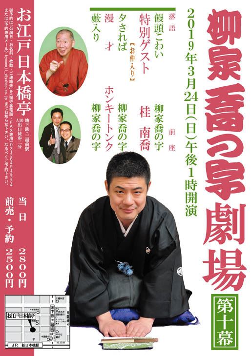 柳家喬の字劇場 ファイナル公演 ~第10幕~ 19/3/24(日) お江戸日本橋亭 シェア ツイート 上演情報 ジャンル 落語/演芸 【演目】 田辺いちか 講談 柳家喬の字 「饅頭こわい」 特別ゲスト 桂南喬 (仲入り) 柳家喬の字 「夕されば」 ホンキートンク 漫才 柳家喬の字 「薮入り」 料金 前売-2,500円 当日-2,800円 キャスト&スタッフ 出演 柳家喬の字 ホンキートンク 田辺いちか ゲスト 桂南喬 お問い合わせ 予約 シェア ツイート