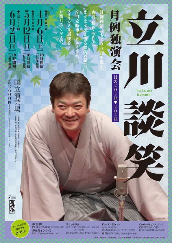 立川談笑 月例独演会 其の204回 19/6/2(日) 国立演芸場 シェア ツイート 上演情報 ジャンル 落語/演芸 料金 【全席指定】3,600円 ※未就学児童は入場不可。 表示できるチケット情報はありません詳しくはこちら キャスト&スタッフ メイン 立川談笑 お問い合わせ 夢空間 シェア ツイート