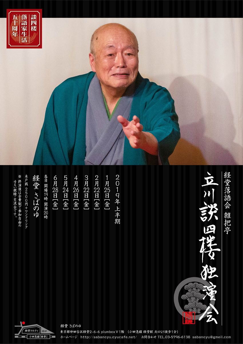立川談四楼独演会 経堂落語会さばのゆ 19/6/28(金) さばのゆ シェア ツイート 上演情報 ジャンル 落語/演芸 料金 2,500円 ※プラス1ドリンク代 キャスト&スタッフ 出演 立川談四楼 お問い合わせ 経堂さばのゆ シェア ツイート